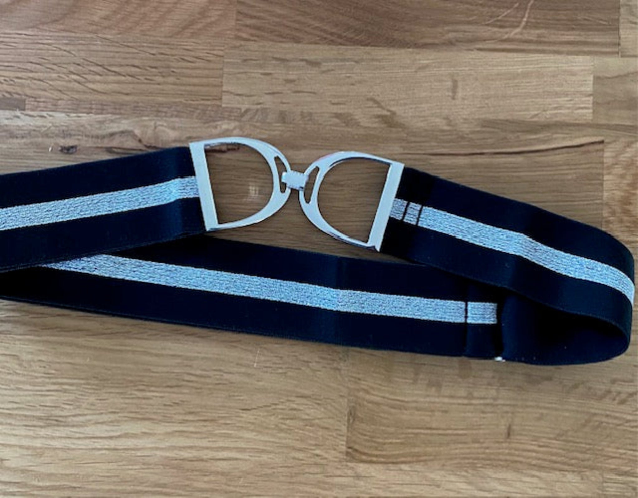 The Black & Silver Stirrup Belt pairs perfectly with classic jodhpurs and casual outfits alike. Its sleek black design with silver detailing adds a stylish touch while providing reliable support and comfort. Ideal for riders seeking a versatile belt that complements both riding gear and everyday wear