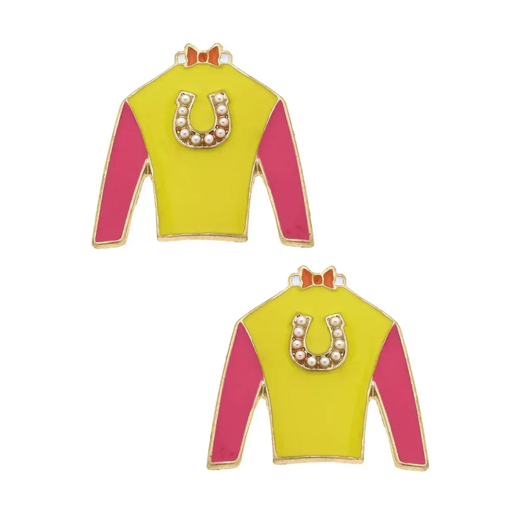 Jockey Silk Stud Earrings Earrings- Pink & Yellow