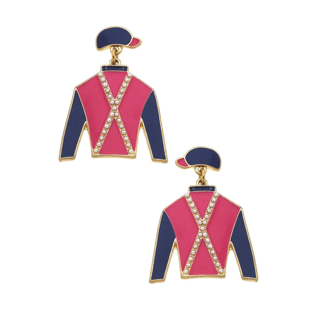 Jockey Silks Huggie Drop Earrings - Pink & Navy