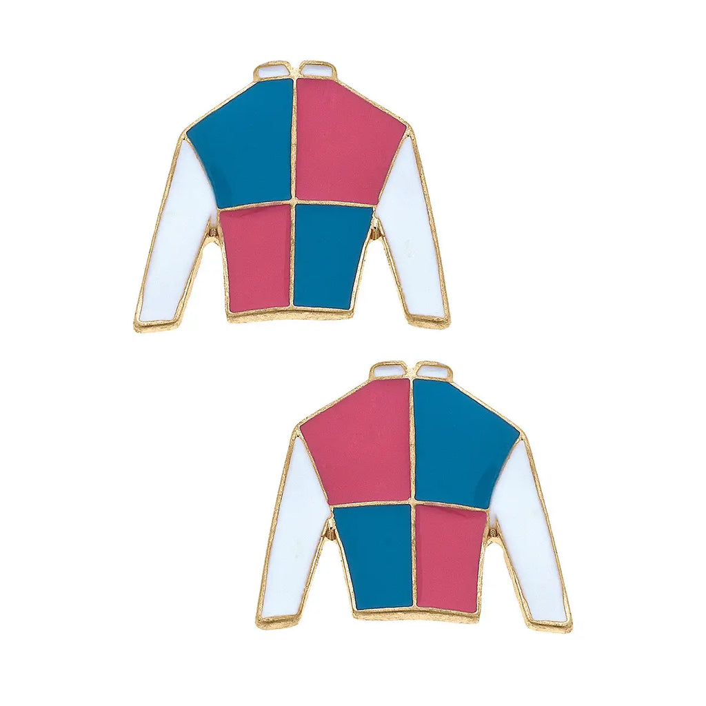Jockey Silk Enamel Stud Earrings in Fuchsia & Blue