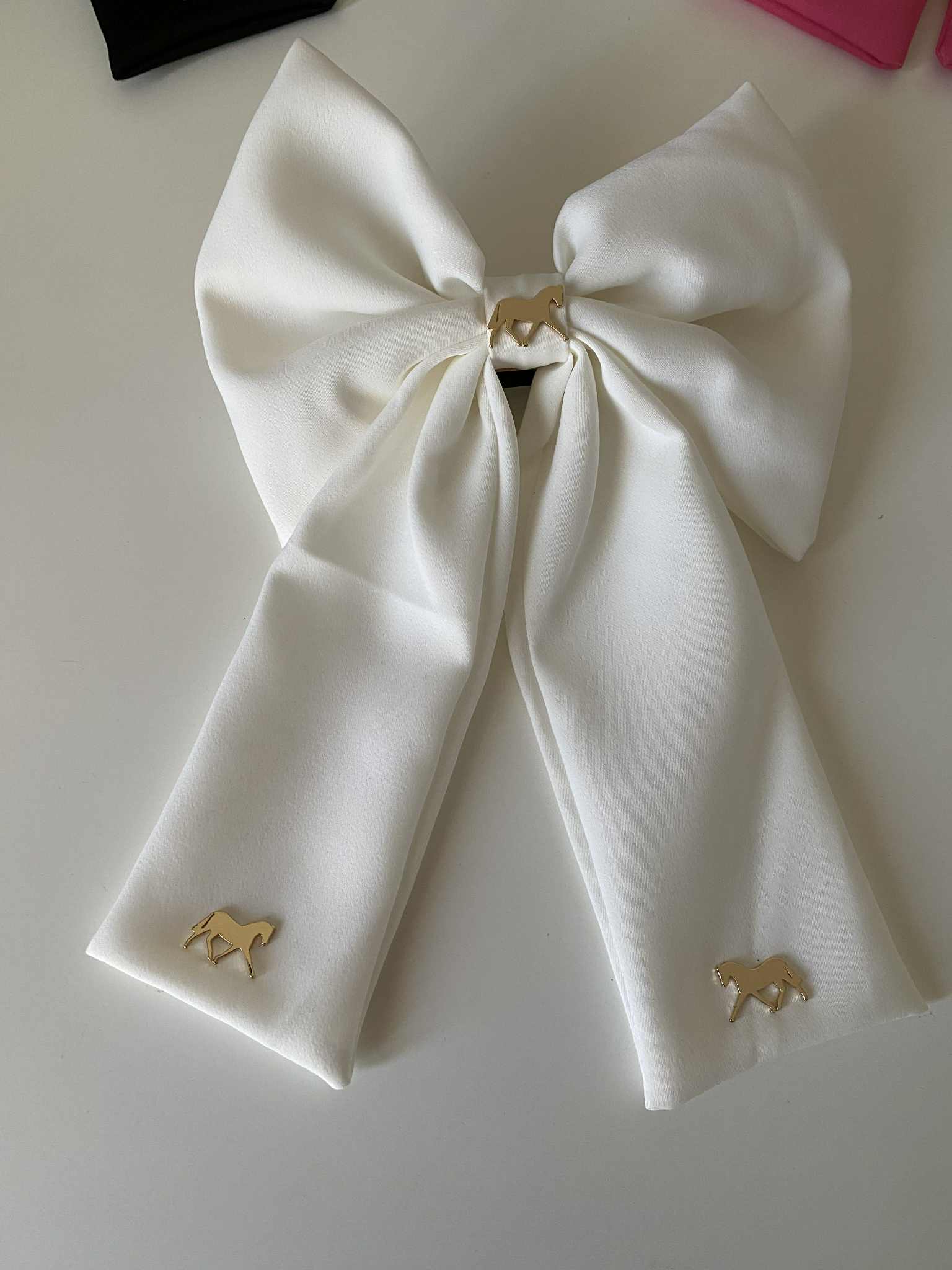 Horse Satin Hair Bows are a stylish accessory for all ages, featuring elegant gold horse embellishments. Made from smooth satin and secured with a covered clip, they are easy to wear and stay in place comfortably. Perfect for adding a charming touch to any hairstyle.