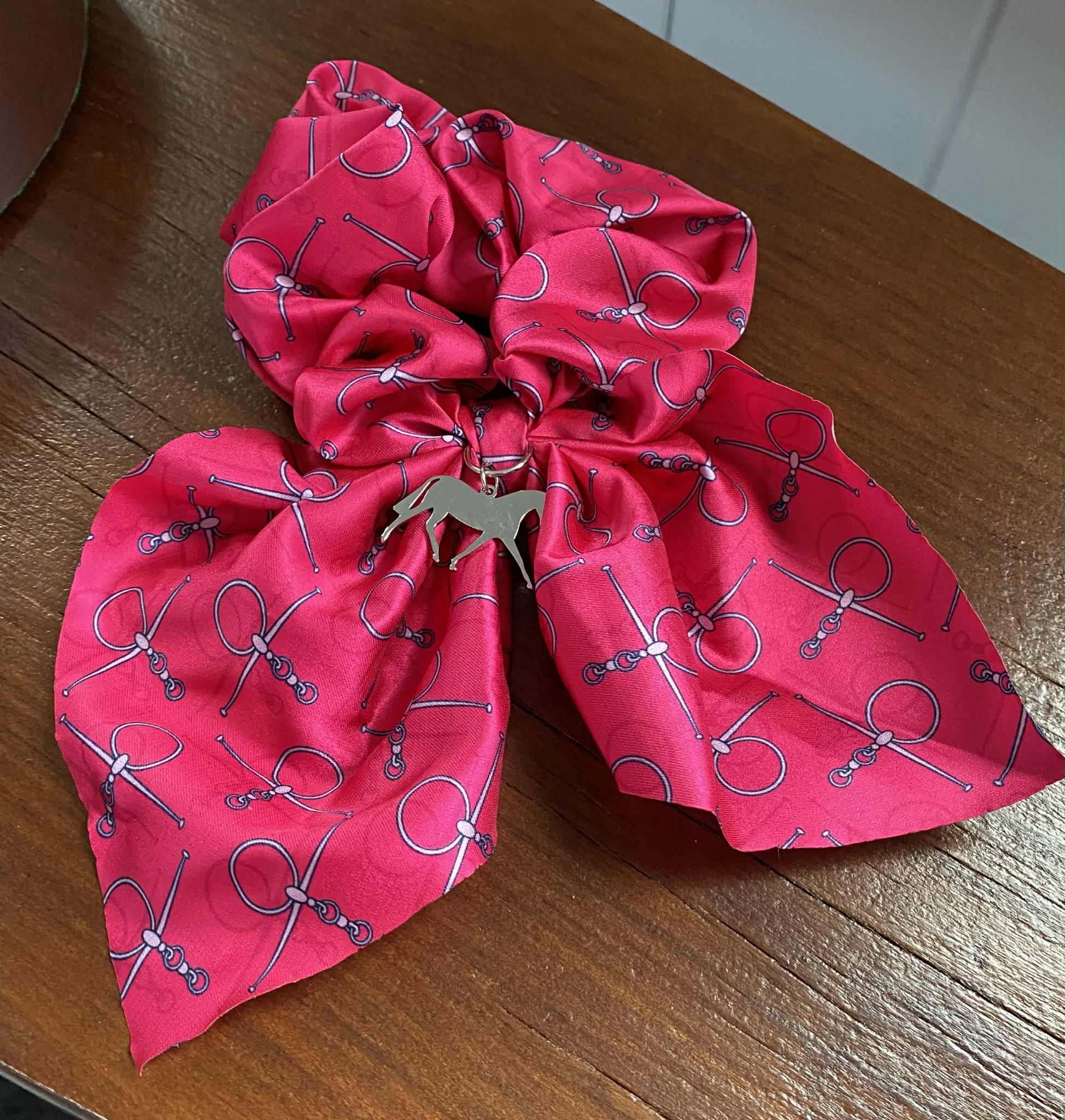 The Waterford Snaffle Scrunchie features a charming Waterford snaffle pattern adorned with a delicate horse embellishment. This simple, elegant accessory adds a subtle equestrian touch to your look while keeping your hair neatly in place. Perfect for everyday wear or training days.