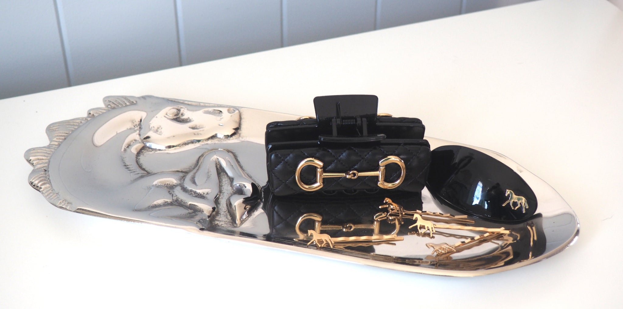 The Black Snaffle Bit Claw features black stitched leather paired with a gold snaffle bit, combining durability with a classic look. Designed for comfort and control, it ensures a secure fit for everyday wear.