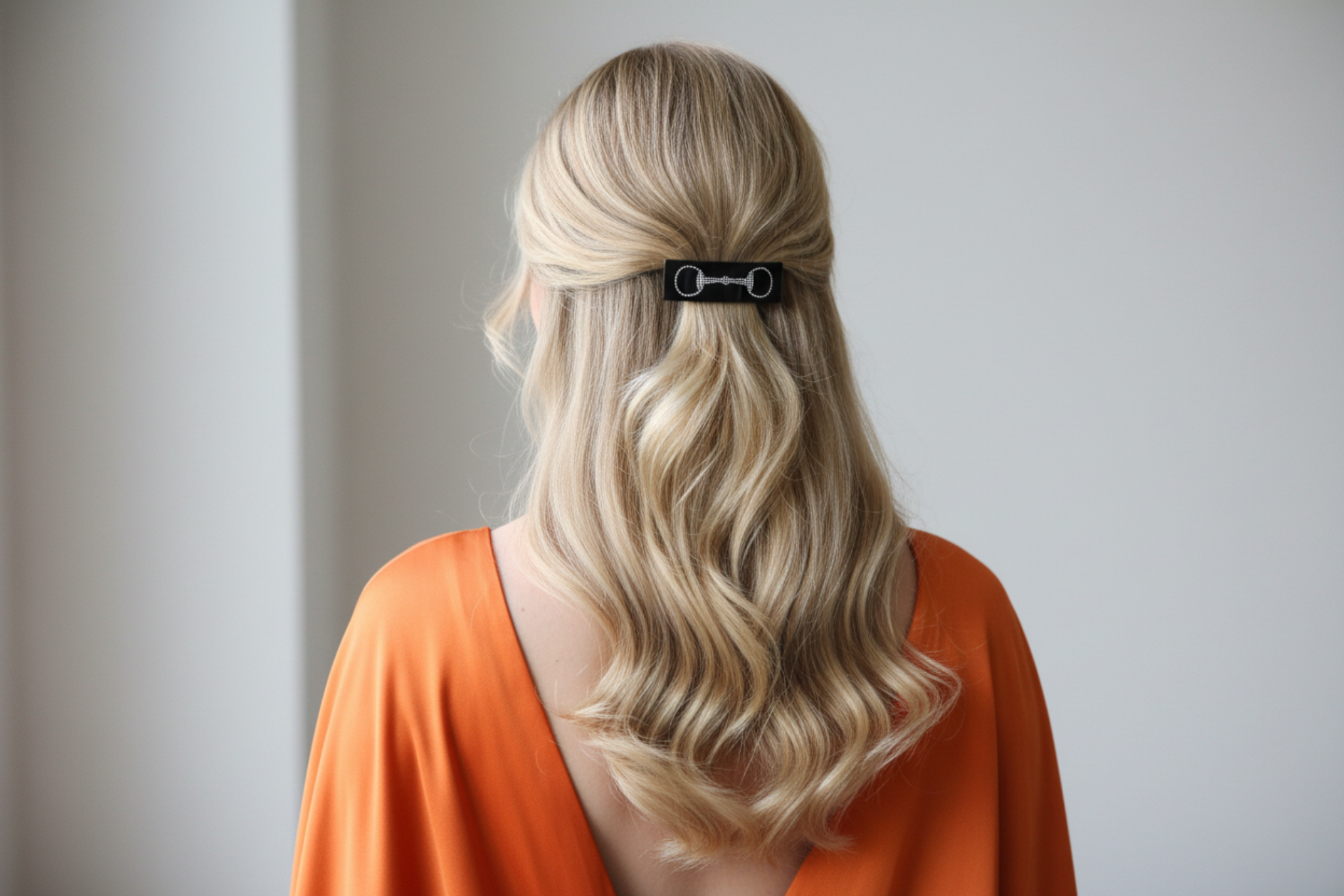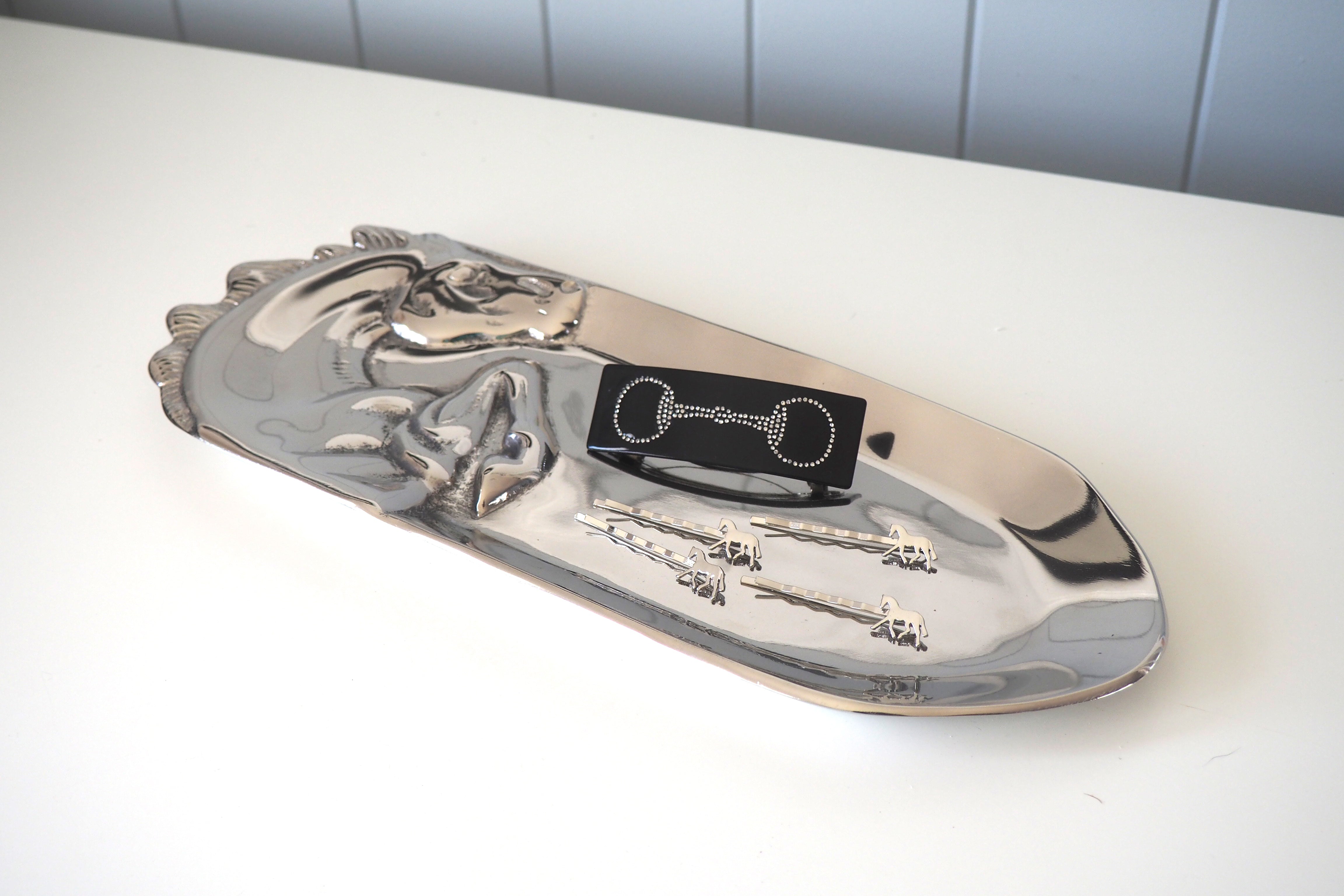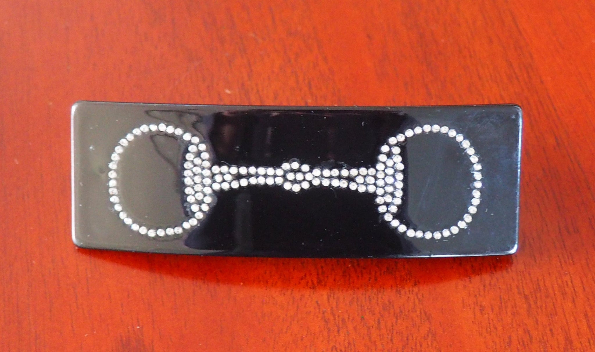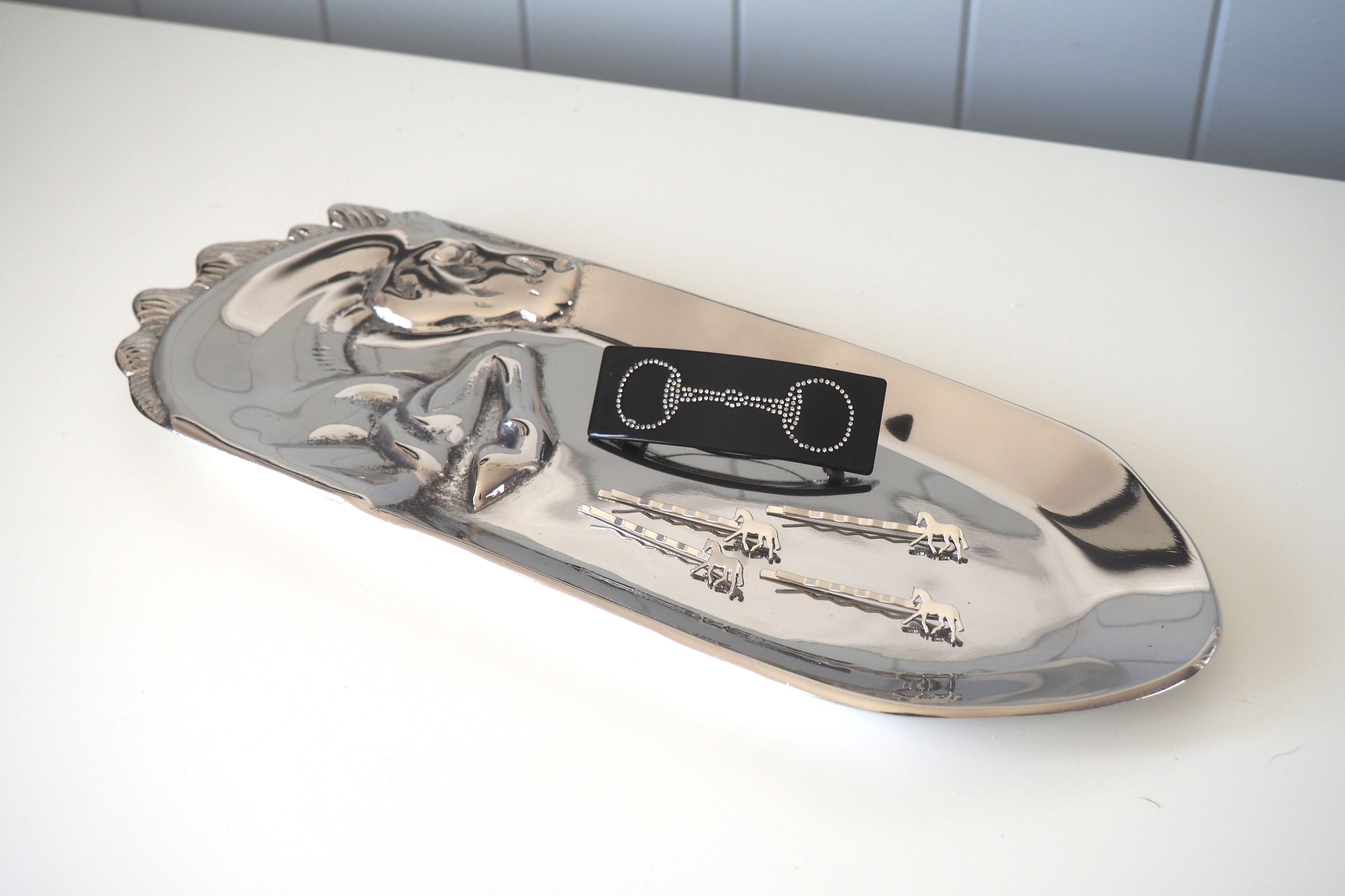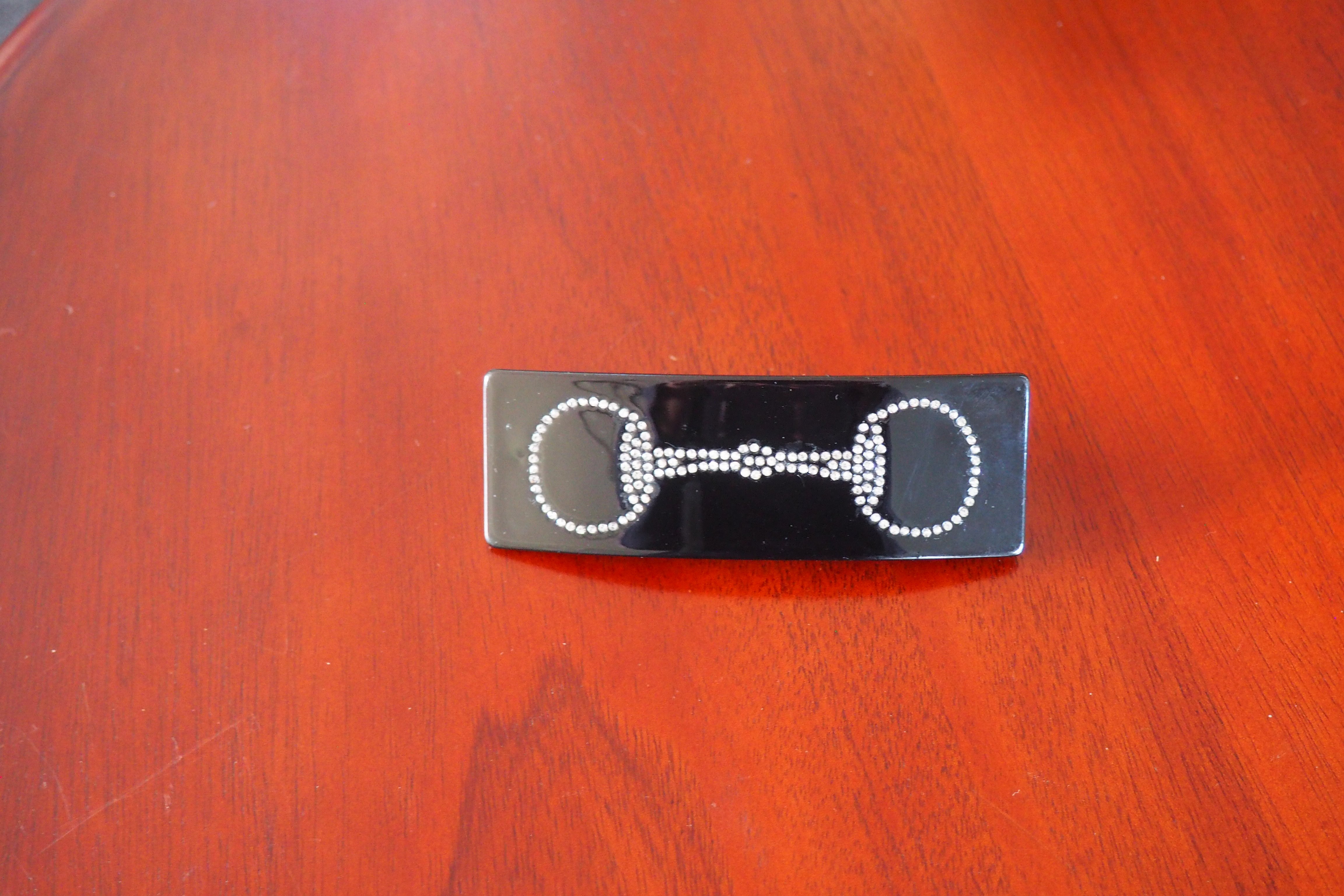 Add a touch of equestrian charm to your hairstyle with this black snaffle bit rhinestone hair clip. Its sparkling rhinestones catch the light beautifully, making it a stylish and subtle accessory for everyday wear or special occasions. Easy to use and secure, it keeps your hair neatly in place while showcasing a unique horse-inspired design.