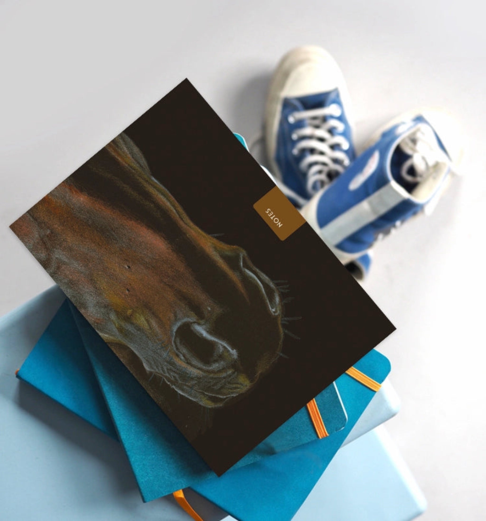 Capture the spirit of equestrian love and peace with this charming A6 pocket notebook. Featuring a hand-painted watercolour illustration of a horse's nose, each notebook showcases an original design that celebrates the elegance of the horse. Perfect for jotting down notes, sketches, or riding plans on the go. Ideal for horse enthusiasts and competitors alike.