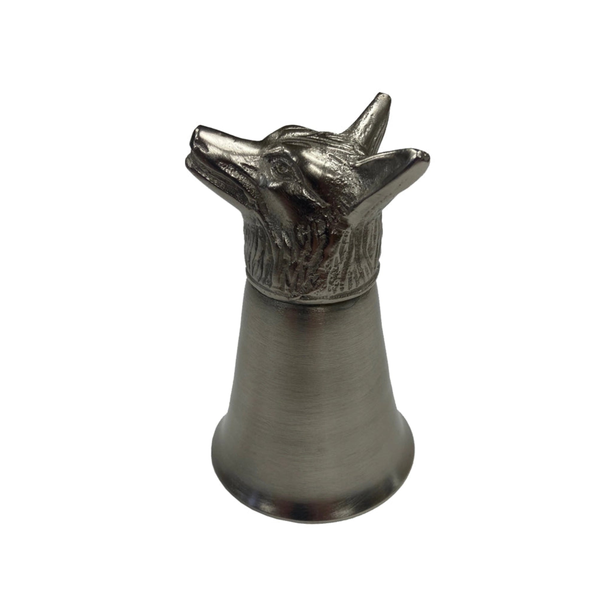 Step back in time with this authentic Fox Head Stirrup Cup, inspired by the drinking vessels used during the 18th and 19th centuries. Hunters traditionally enjoyed a quick drink from these cups while mounted on horseback before or after their expeditions. Crafted from pewter-plated brass with meticulous attention to detail, this piece holds 2 ounces of liquid and serves as both a functional vessel and a striking decorative accent. Perfect for history lovers, equestrian enthusiasts, and collectors seeking a genuine piece of hunting heritage.