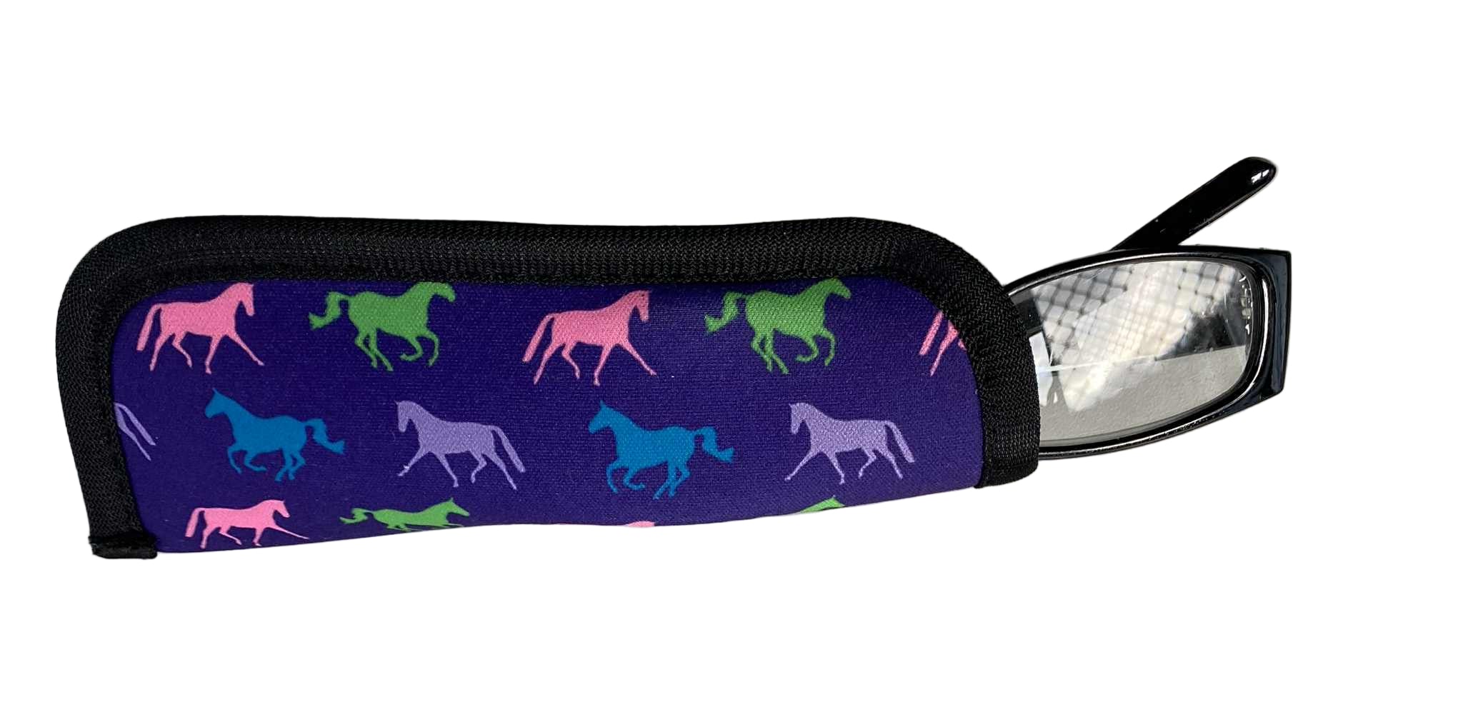 Protect your reading glasses in style with this delightful Horses Reader Glasses Cover. Featuring a playful, colourful horse design, it's the perfect accessory for equestrian enthusiasts and horse lovers alike. This practical cover keeps your specs safe from scratches and damage while adding a cheerful pop of personality to your daily routine. Simple, functional, and fun.