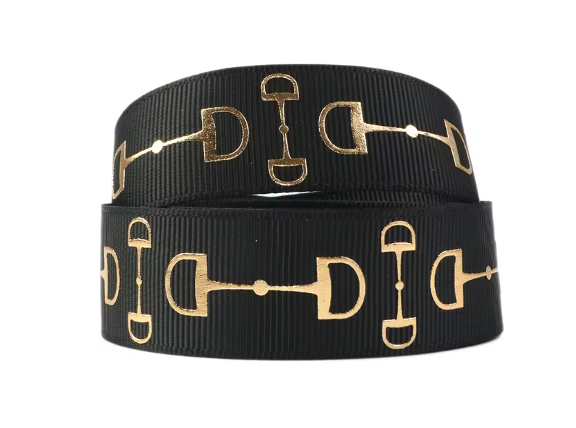 This Gold Snaffle Bit Ribbon in black is perfect for crafts or hair styling. Its elegant design adds a subtle touch of sophistication, making it a versatile accessory for various creative projects or everyday wear. Durable and easy to use, it’s a practical choice for adding a unique detail to your look.