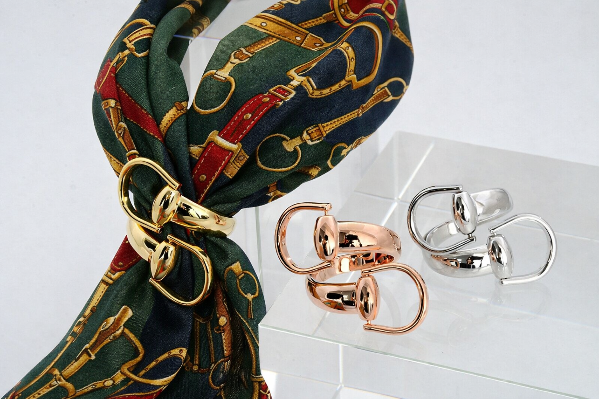 Elevate your equestrian style with this elegant snaffle bit scarf ring. Crafted with a classic design inspired by horse tack, it's the perfect accessory for riders and horse enthusiasts who appreciate timeless pieces. Slip it onto your scarf, wrap, or lightweight fabric to add a touch of equine charm to any outfit. A versatile addition that celebrates your passion for horses in everyday wear.