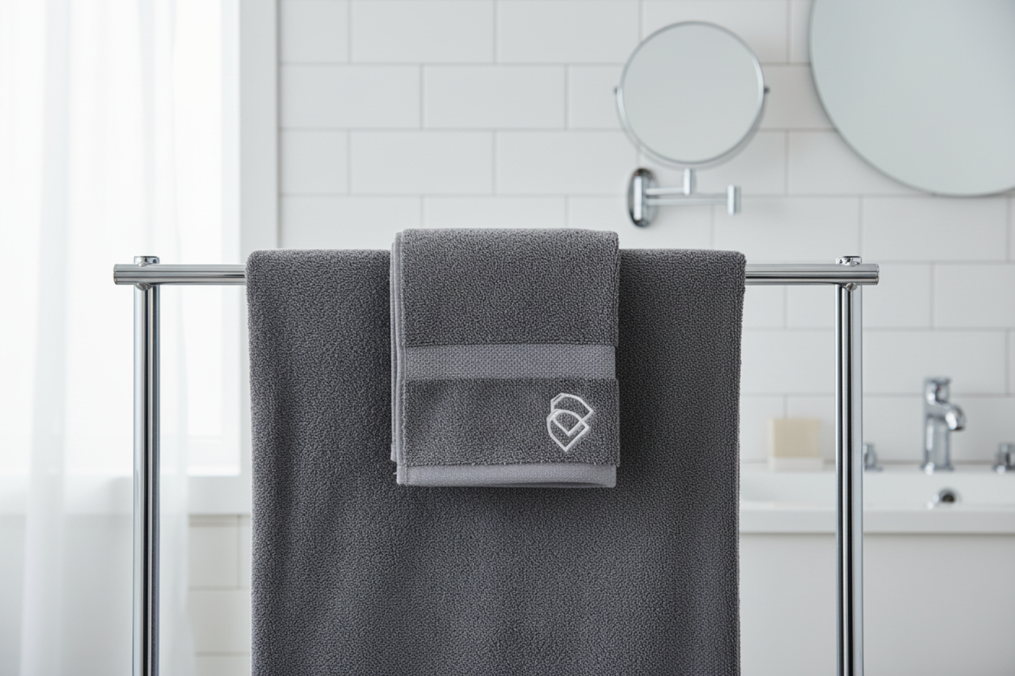Slate Royal Ascot Towels - Silver Stirrup Design