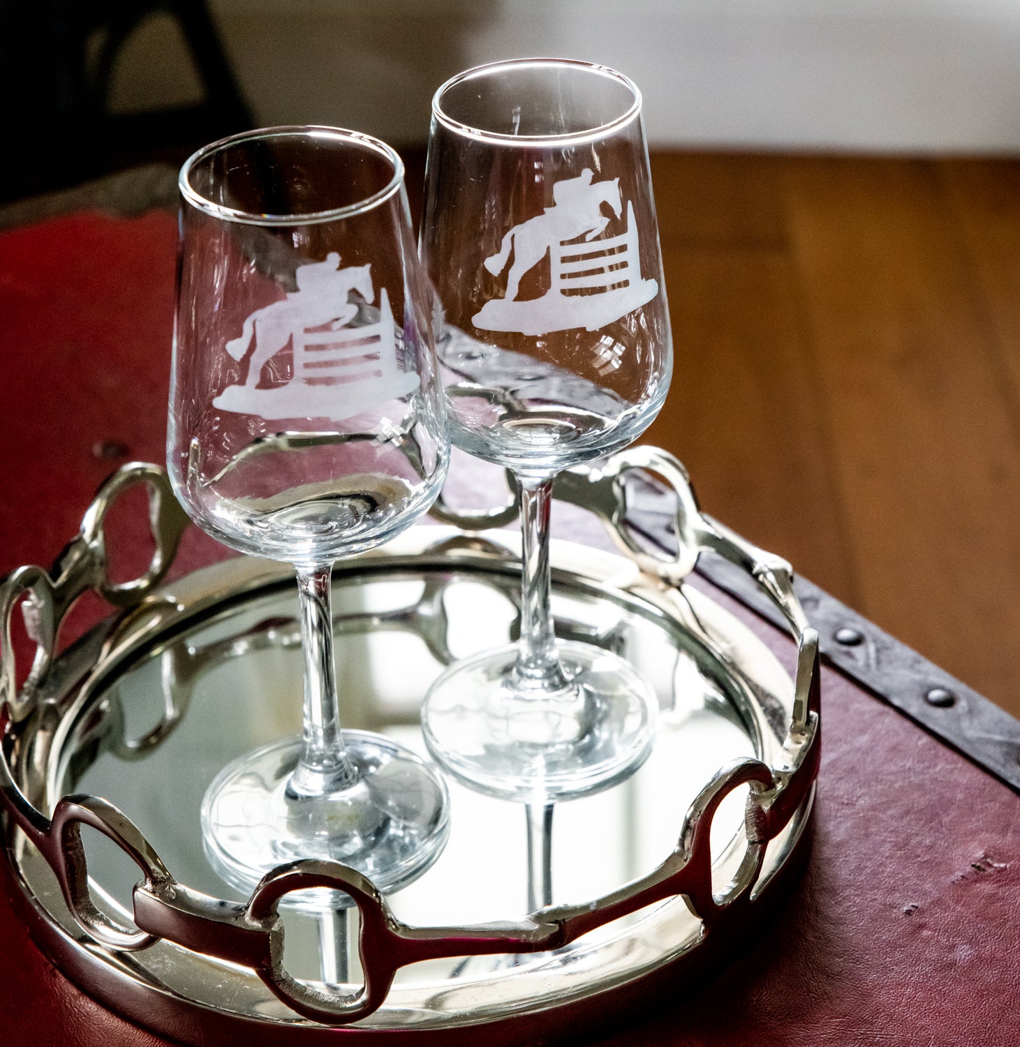 Celebrate your passion for showjumping with this elegant Showjumping Wine Glass. Perfect for relaxing after a day at the stables, its unique design adds a touch of equestrian charm to any occasion. Durable and stylish, it's a great gift for riders and horse lovers alike. Enjoy your favourite wine with a glass that reflects your love for the sport.