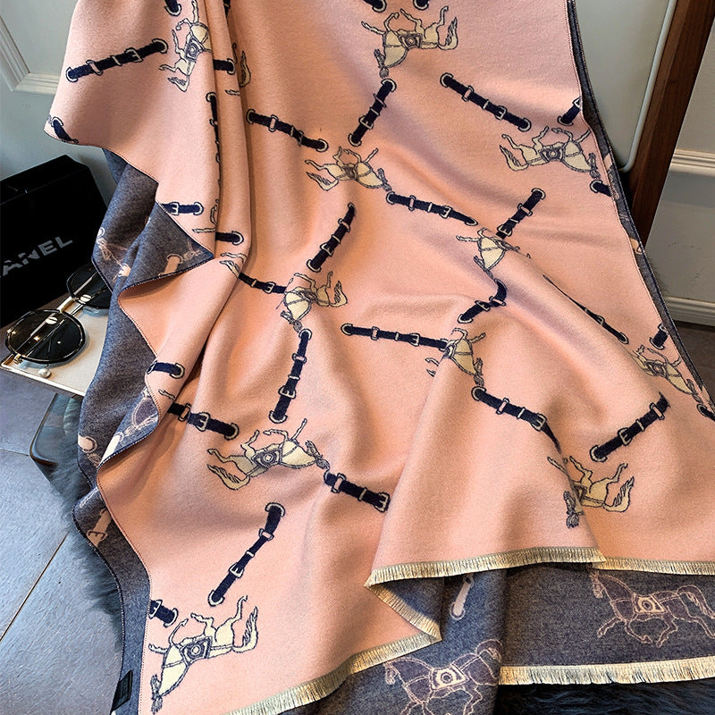 Wrap up warm with the Tangier Winter Scarf, featuring a soft cashmere feel for gentle comfort. Its elegant pink and navy colors add a stylish touch that complements any winter outfit while keeping you cozy during chilly days.