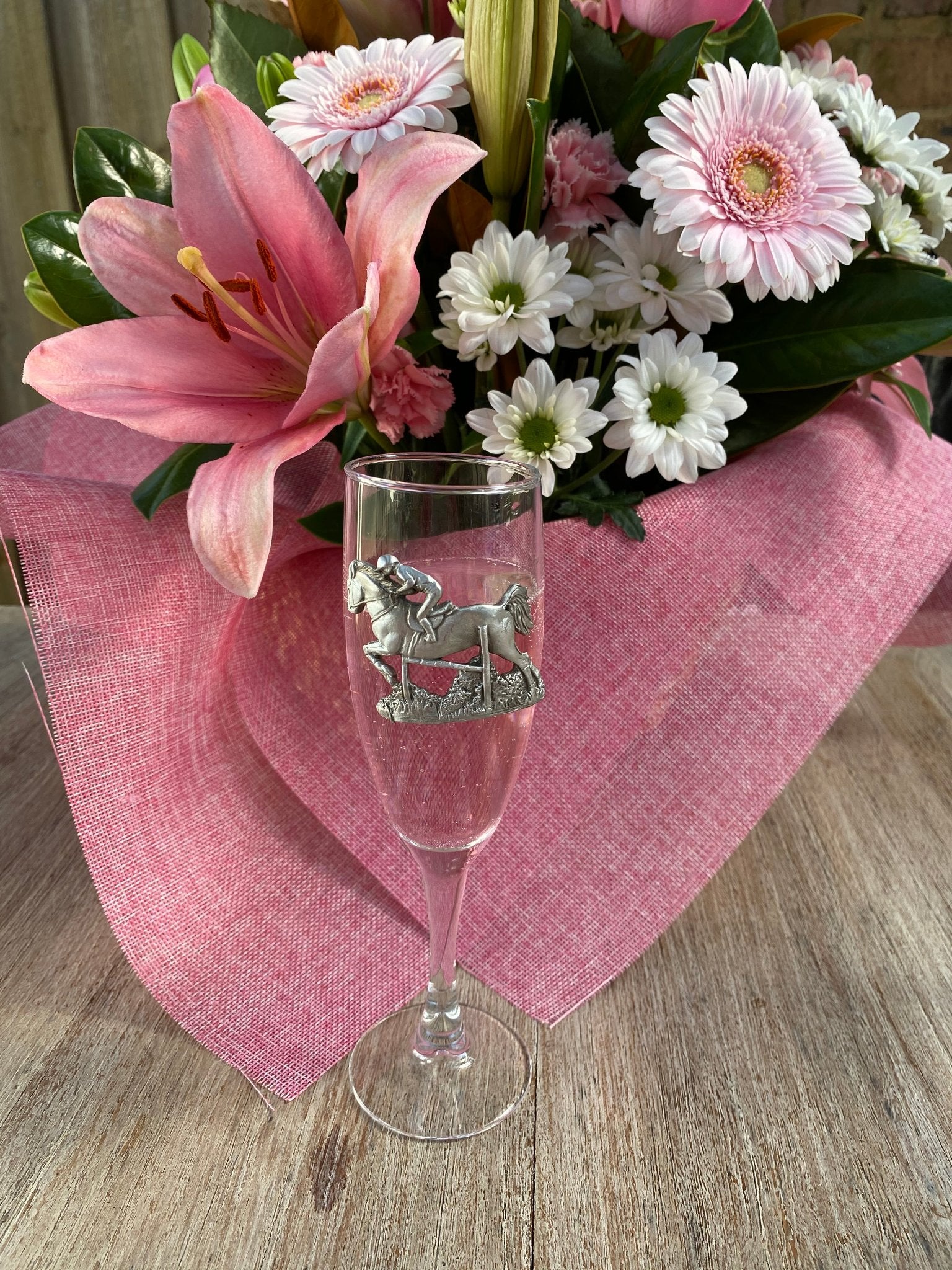 This Show Jumper Champagne Glass features a charming pewter motif that adds a touch of elegance to your celebrations. Perfect for equestrian enthusiasts, it combines style with functionality, making every toast special.